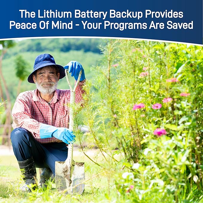 - EFFORTLESS SETUP & OPERATION - With a swing panel and push wire terminals, installation and wiring are a breeze, allowing you to quickly set up tailored watering schedules.