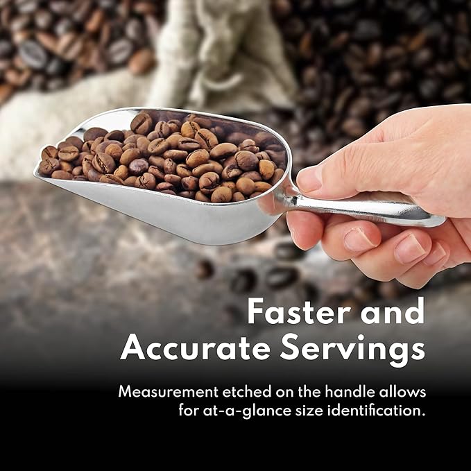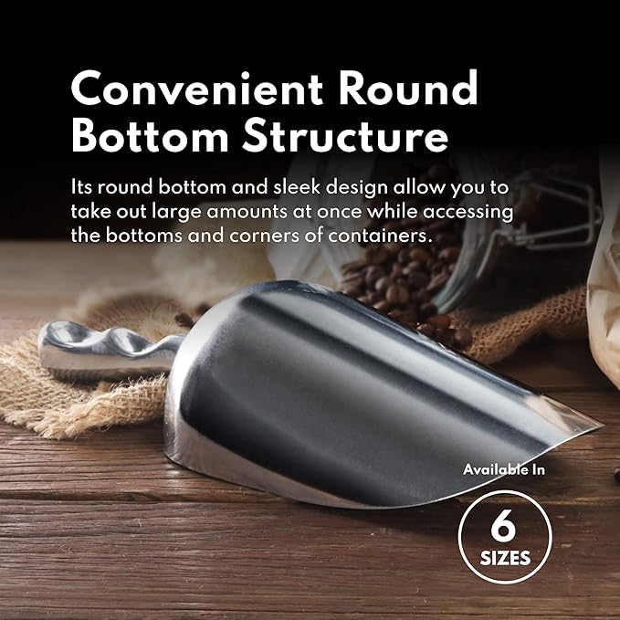 - Commercial-Grade Aluminum utility scoop great for ice, sugar, flour, popcorn, and candy.