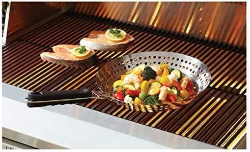 - EASY MANEUVERABILITY WITH REMOVABLE HANDLE - Designed for effortless grilling, this stainless steel grill skillet features a removable, heat-resistant handle for safe and easy transport on and off the grill. Whether used as a vegetable grill basket, fish grill basket, or all-purpose grilling pan, it provides ultimate convenience for outdoor cooking. Perfect for grilling veggies, seafood, and more, its versatile design ensures even cooking while preventing small foods from falling through the grates.