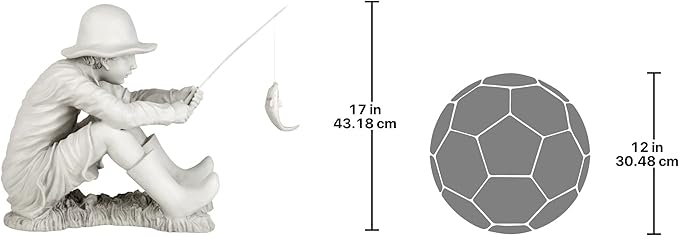 Design Toscano Gone Fishing Fisherman Boy Garden Statue, 17 Inch Tall, Cast Stone Resin, Two Tone Stone Finish