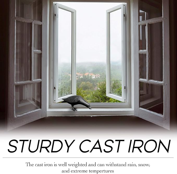 - Sturdy Metal Garden Art โ Unlike the real thing, this crow statue will not fly away! The cast iron is well weighted to keep these garden statues where you place them. Rain, snow, and even moderate wind will not disturb these outdoor statues.