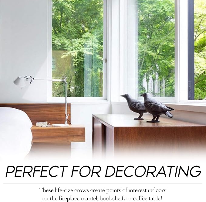 - Life Size Statue โ These crow garden statues add interest where you place them: indoors on the fireplace mantel, bookshelf, or coffee table; these bird figurines are also perfect outdoors statues as well, in the garden or on the deck railing. Pick you favourite spot to display this delightful piece of crwo decor.