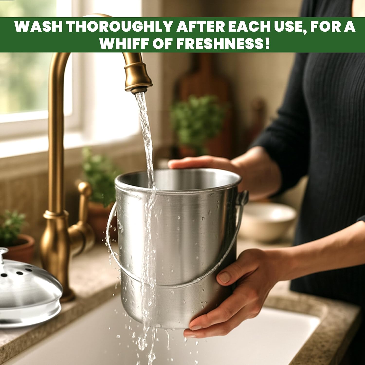 - Sturdy, stylish and sleek design complements any decor so that this kitchen compost bin can sit conveniently on your counter-top or wherever you need it