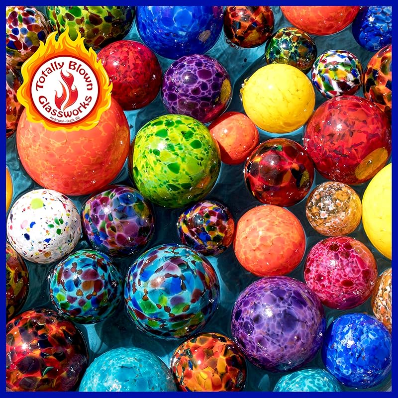 - Vibrant Handmade Glass Spheres: Beautifully crafted blown glass balls in a variety of vivid color, patterns, and sizes. Colorful addition to your home, patio, garden or water feature.