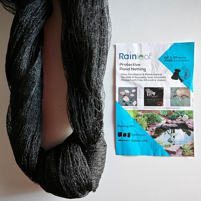 Rainleaf Pond Netting, 28' x 30' Pond Net Cover, Koi Pond Netting for Leaves, Heavy Duty Koi Pond Net Protecting Koi Fish from Herons, Stakes Included, Snare Nets
