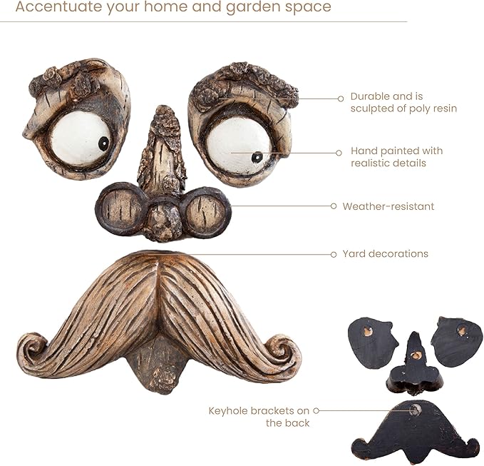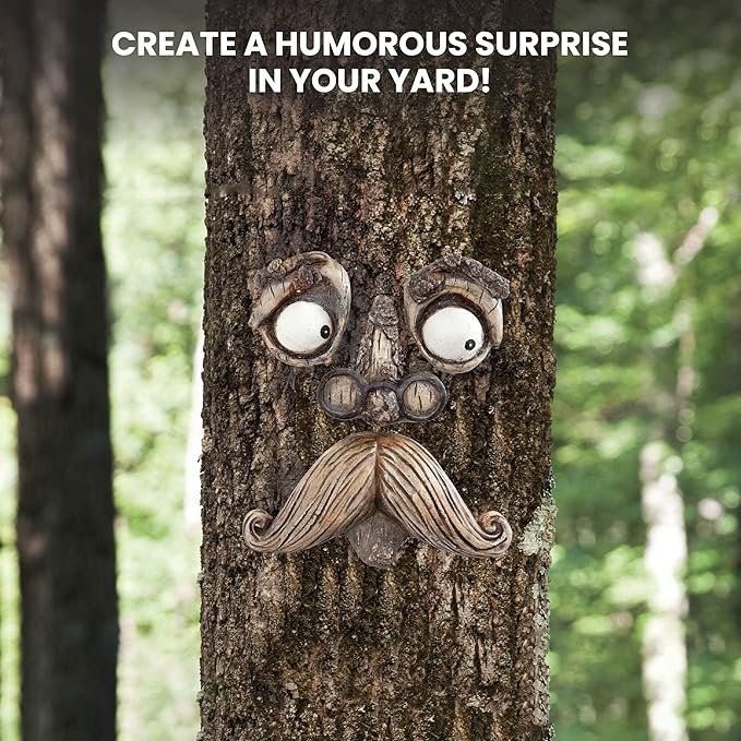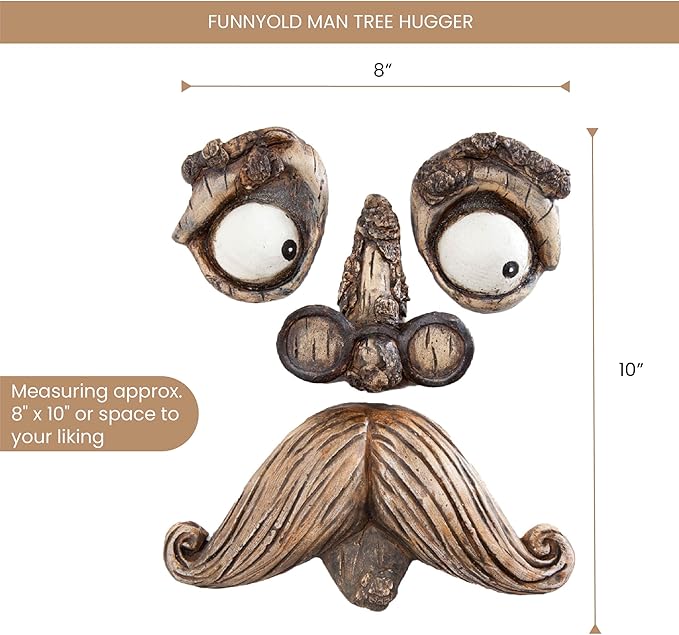 - A delightful surprise on a tree or fence, our funny old man seems to emerge from the bark or wood with watchful eyes.
