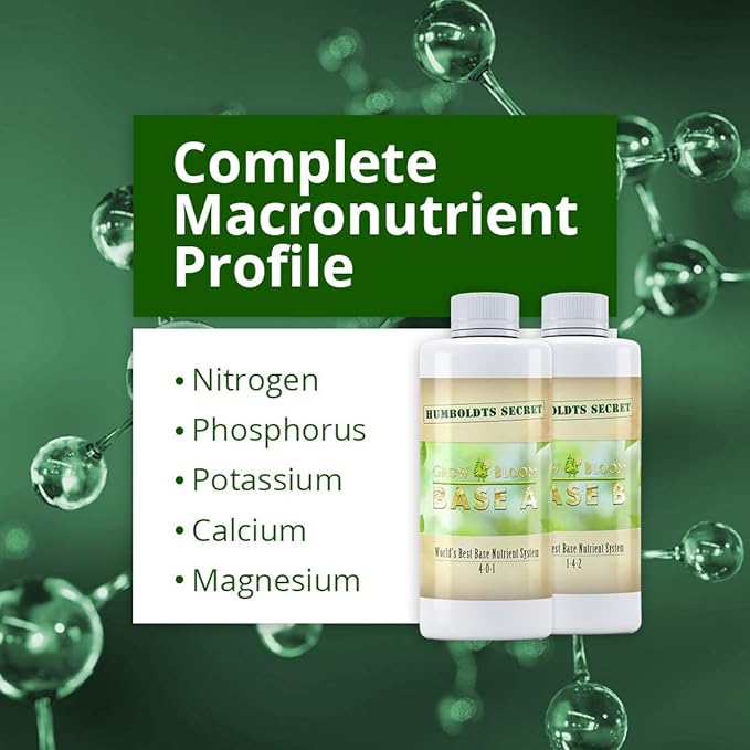 - COMPLETE MACRONUTRIENT PROFILE FOR PLANT NUTRITION: The combination of our Base A & B Bundle results in a complete feed for rapidly growing flowering plants and indoor plants. Our signature blend consists of Nitrogen, Phosphorus, Potassium, Calcium, Magnesium, and more.