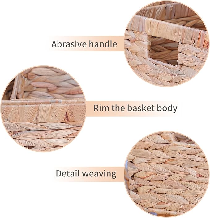 Storage Baskets,Woven Natural Water hyacinth Box with Handle,Kingwillow.(Set of 3)