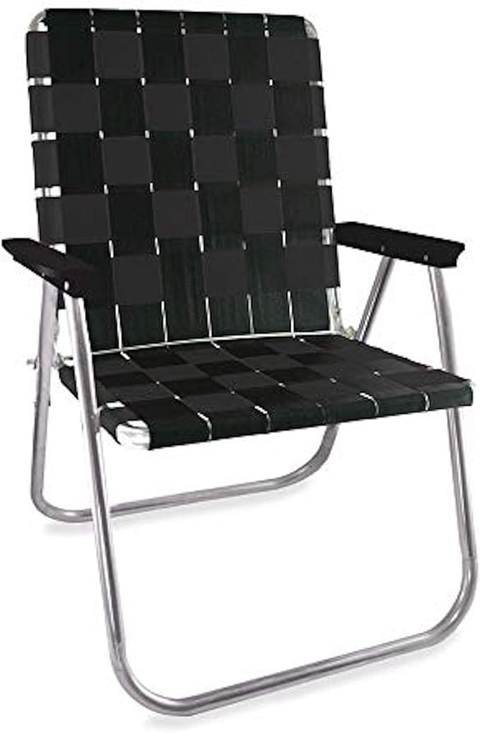 Lawn Chair USA Folding Aluminum Outdoor Patio Lawn Chair | Heavy-Duty Webbed Chairs for Camping, Sports, Beach, Yard & Tailgating | Lightweight Portable | Magnum - Black with Black Arms