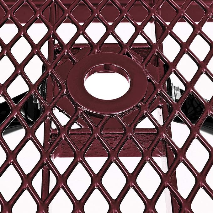 Global Industrial 6’L Rectangular Picnic Table, Expanded Metal, Red Thermoplastic Coating, Attached Benches, 1-1/2” Umbrella Pole Hole, Outdoor-Rated, 1000 lb Capacity, 72” x 30” Tabletop