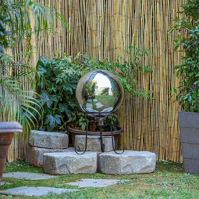 - GAZING GLOBE YARD ART AND ONE-YEAR Support: Measures 10" Diameter to fit almost any outdoor area and includes a one-year manufacturer's Support from date of purchase