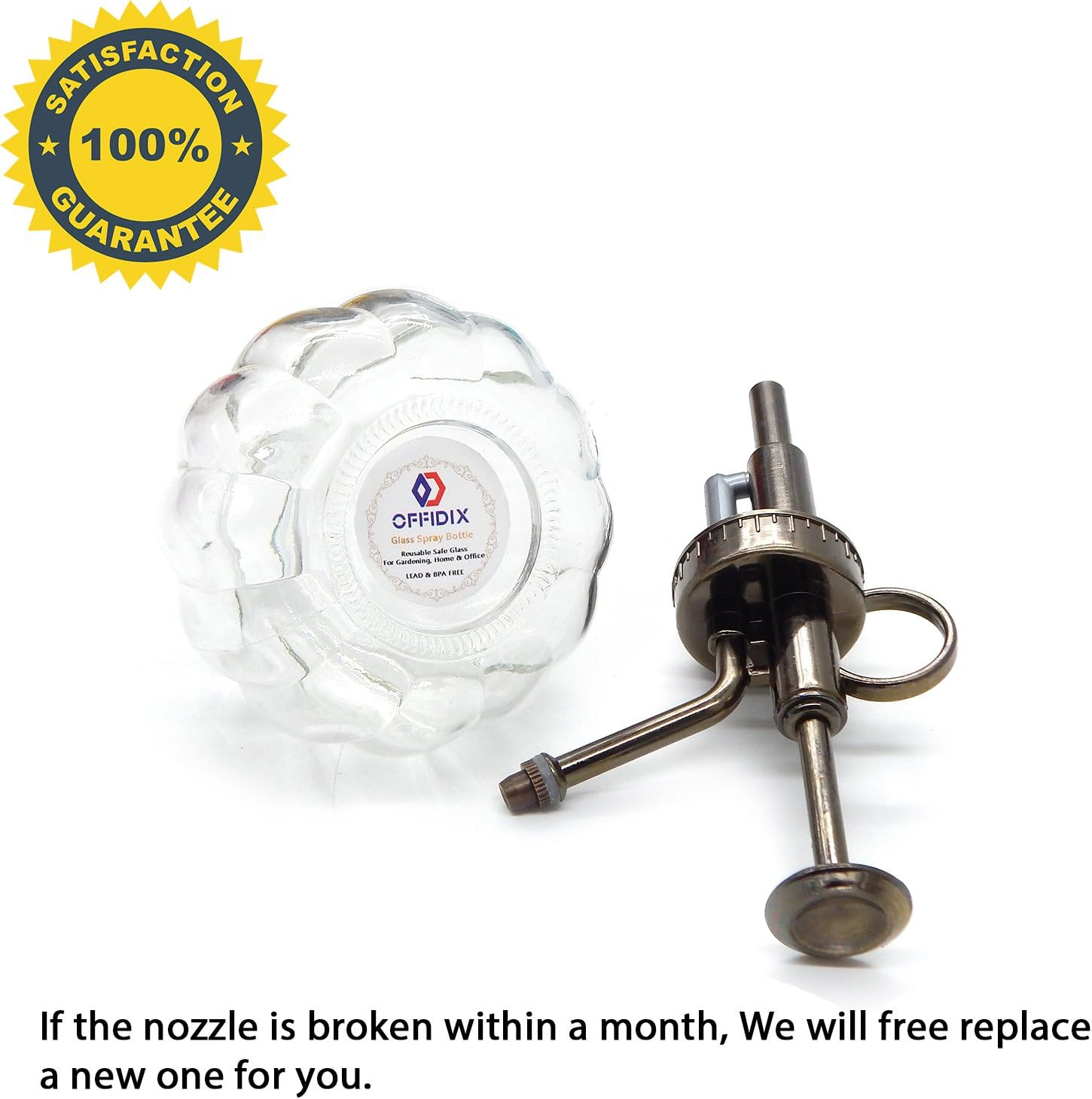OFFIDIX Transparent Glass Watering Spray Bottle, 6.3 Inches Tall Vintage Style with Bronze Plastic Top Pump One Hand Plant Mister Glass Watering Can Indoor