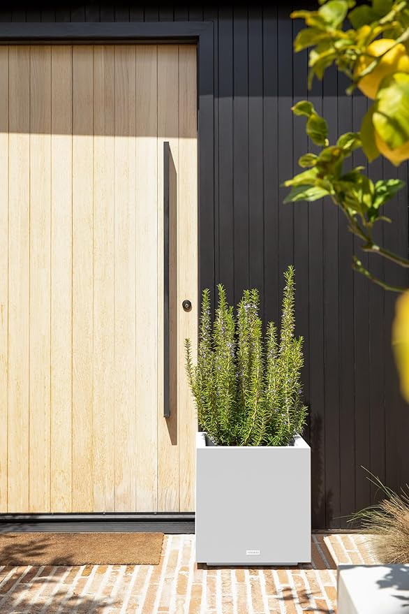Veradek Block Series Cube Plastic Planter - Large Square Planter for Indoor or Outdoor Patio/Garden | Durable All-Weather Use with Drainage Holes | Modern Décor for Tall Plants, Trees, Flowers