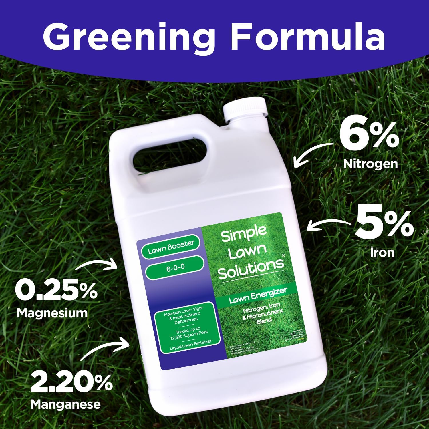 Commercial Grade Lawn Energizer - Grass Fertilizer Booster with Nitrogen, Iron, Micronutrients - Liquid Turf Spray Concentrated Fertilizer- Any Grass Type - Simple Lawn Solutions (1 Gallon)