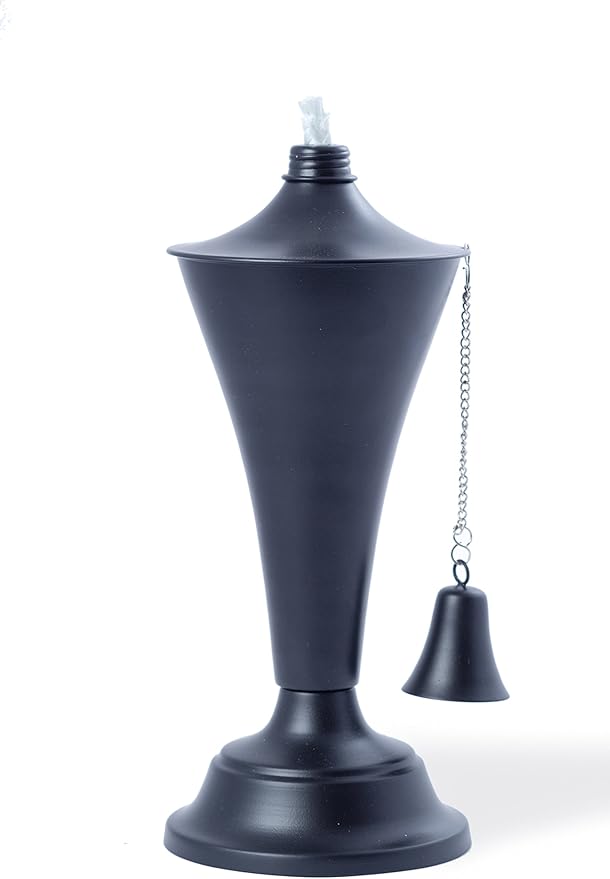 Set of 4, Oahu Premium Metal Patio Torches, 53" Tall- Tiki Style/w Snuffer, Fiberglass Wick & Large 16oz Oil Lamp for Deck, Patio, Lawn, Garden, Luau (Smooth Black)