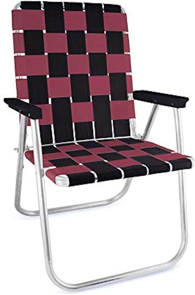 Lawn Chair USA Folding Aluminum Outdoor Patio Lawn Chair | Heavy-Duty Webbed Chairs for Camping, Sports, Beach, Yard & Tailgating | Lightweight Portable | Classic - Black/Burgundy