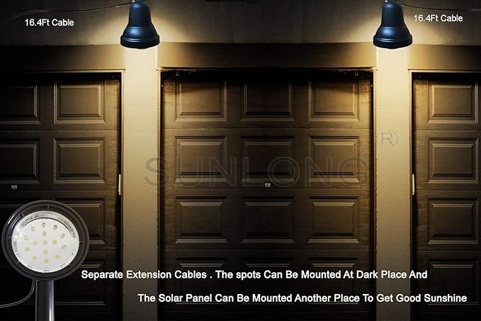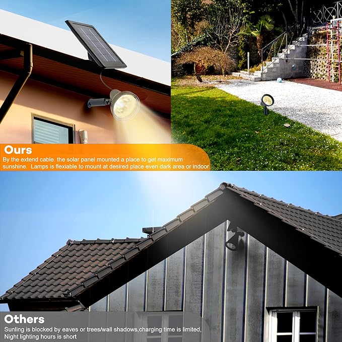 - 【Solar Light With Separate Solar Panel】Waterproof 16.4Ft Extension Cables to Let You PLACE The Spotlights at Favorite Places Even NO SUNSHINE or Indoor.Two-Ways Mounting: Stick into the ground with stakes