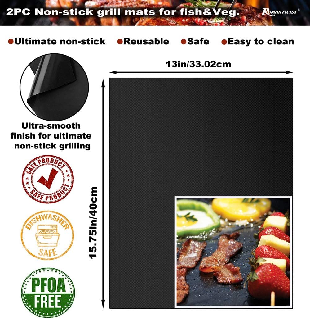 ROMANTICIST 23pcs Must-Have BBQ Grill Accessories Set with Thermometer in Case - Stainless Steel Barbecue Tool Set with 2 Grill Mats for Backyard Outdoor Camping - Father's Day Best Barbecue Gift