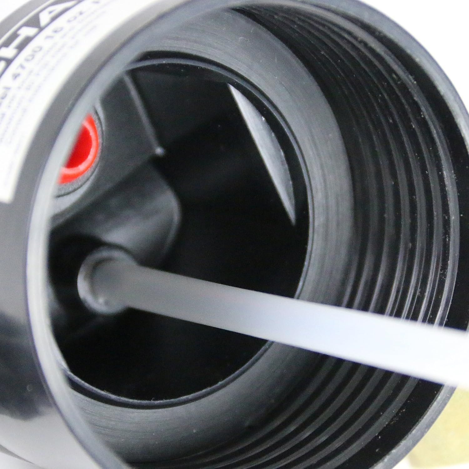 - Rigid inlet tube with filter for debris-free mixing and drain plug with valve to quickly empty the tank after each use