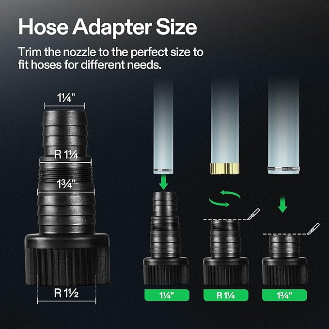 - Easy Installation: Adjustable outlet direction and 20.3 ft; Power cord to meet a variety of requirements; Flexible tube size of 1โ or 1-1/4โ internal diameter; Can be used together with filter systems