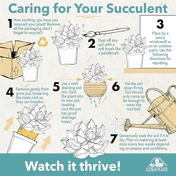 - PACKAGING: All plants come with helpful care instructions and are packaged with care at our facility by our succulent shipment specialists