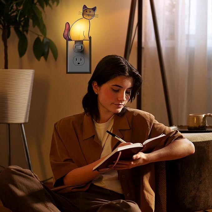 - Beautiful Stained-Glass Night Light Can Plug in Anywhere: The Yellow Cat Decorative Nightlight with Illuminate your home with festive cheer, a perfect blend of seasonal warmth, colorful whimsy, and holiday spirit, making every space feel cozy and magical.