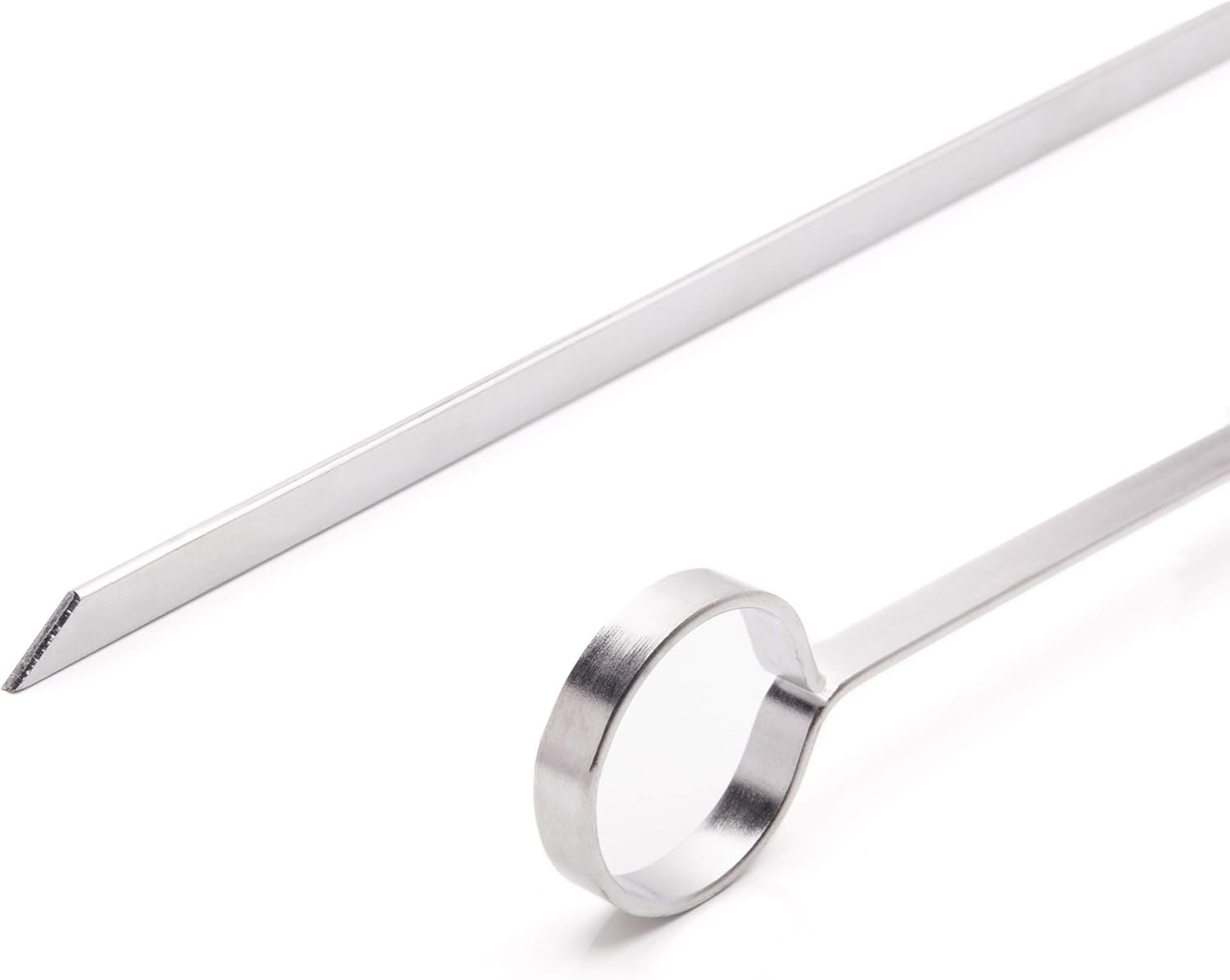 - FLAT SKEWERS - Won’t spin on the rack and fall to the heavy side so you can perfectly cook each side.