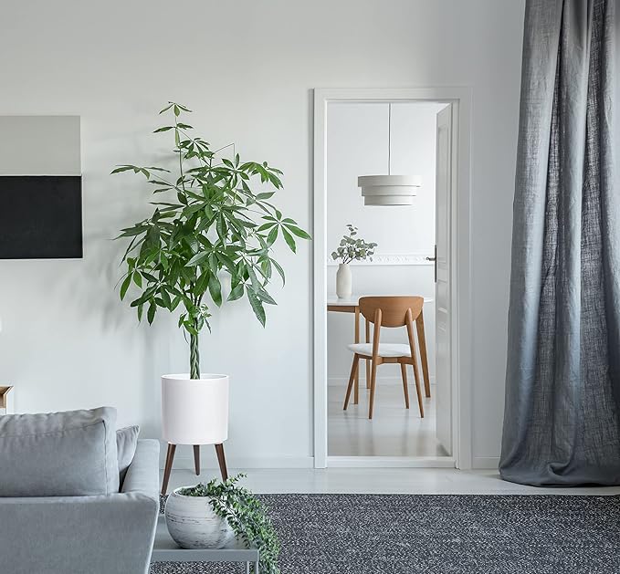 D'vine Dev 12 Inch Planter Pot with Stand, Mid-Century Tall Plant Pot with Legs for Indoor Plants, Large, White, 88-O-C-1