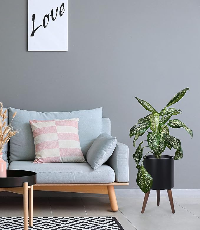 D'vine Dev 10 Inch Planter Pot with Stand, Mid-Century Tall Plant Pot with Legs for Indoor Plants, Medium, Black, 88-O-B-2