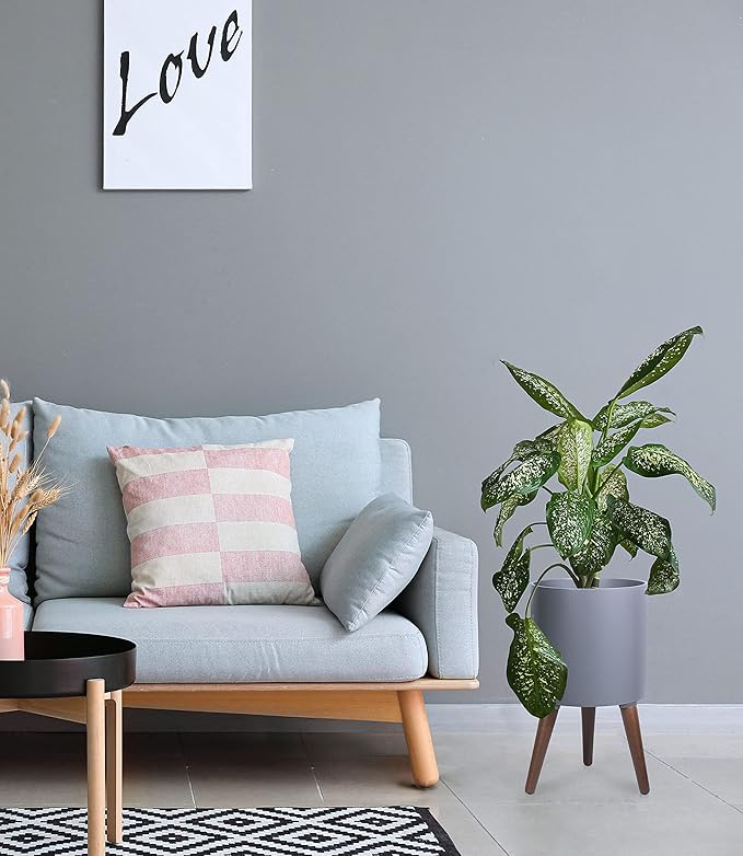 D'vine Dev 10 Inch Planter Pot with Stand, Mid-Century Tall Plant Pot with Legs for Indoor Plants, Medium, Grey, 88-O-B-3