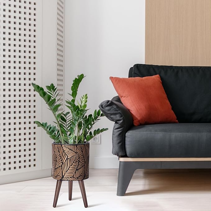 D'vine Dev 10 Inch Planter Pot with Stand, Mid-Century Tall Plant Pot with Legs for Indoor Plants, Medium, Bronze/Grey, 88-L-B-6