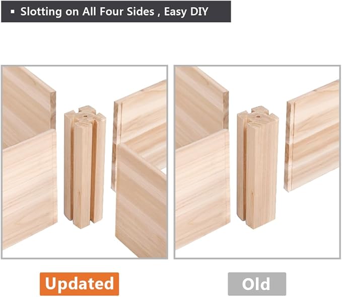 - Flexible DIY: The corner posts have been upgraded that the number of slotting on the posts is increased from 2 on the opposite 2 faces into 4 on 4 faces. Such a change enables users to combine two or more such planting beds more flexibly and fixedly.