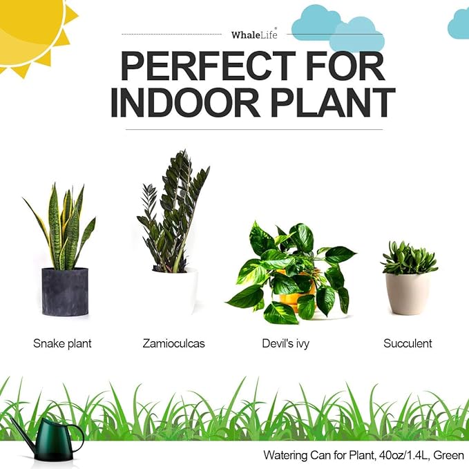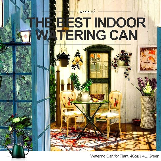 WhaleLife Indoor Watering Can for House Bonsai Plants (1.4L, Green)