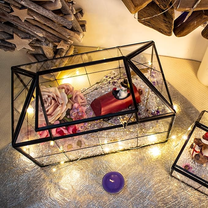 - 【Piece of Art】This glass terrarium is like a piece of art with its modern style and sleek design. The frame are perfectly aligned with the glass. A perfect addition to any home or garden no matter indoors or outdoors to create a great miniature gardens are perfect for your desk or any room in your home