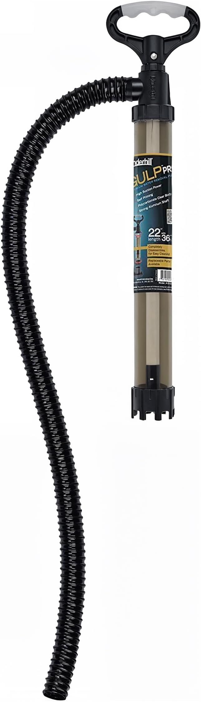 - WATER PUMP – The Underhill Gulp Pro Pump features an Aircraft aluminum pump shaft, clear cylinder body, and dual-stroke design for quick water removal. A hand water pump with high suction power.