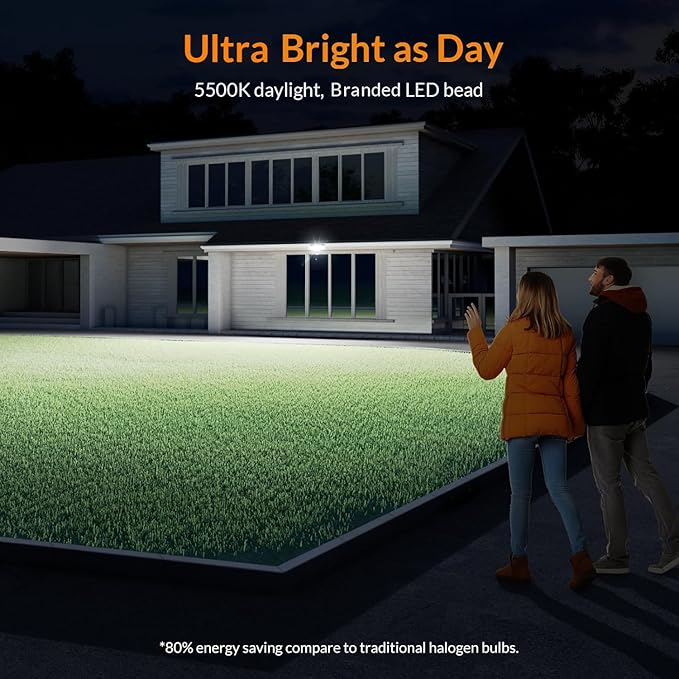 - Motion Sensor Lights: Security motion light can be triggered by the moving human, cars or animals up to 72 feet sensing range at 180ยฐ detection angle; Brings extra safety to your home