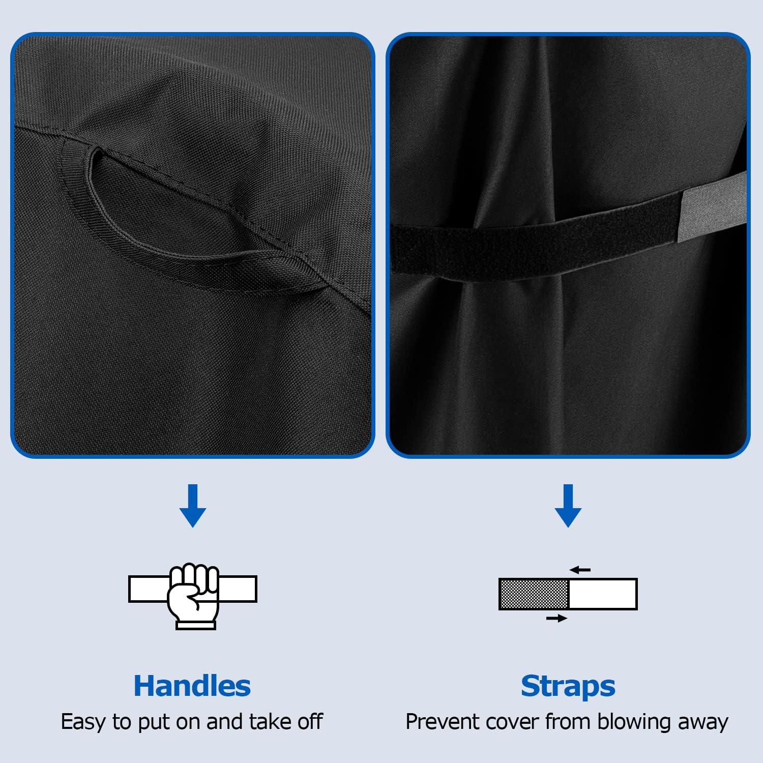 - Wind Resistant - Two fastening straps at middle of the heavy duty grill cover can be adjusted for a proper fit and keep cover securely in place to prevent the grill cover from blowing away in high winds.
