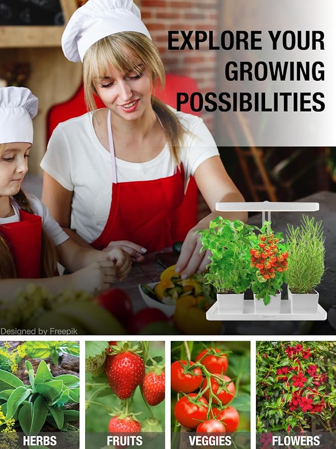 TORCHSTAR Indoor Herb Garden with LED Grow Light, Height Adjustable, 20W Growing System with Automatic Timer, CRI 95+, Full Spectrum Plant Light for Seeds, Vegetation, Home, White, No Pots or Plants