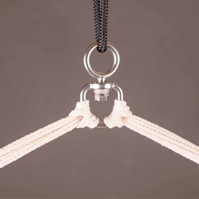 - SEAMLESS SWINGING EXPERIENCE: Embrace unrestricted movement with the integrated 360° safety swivel. Pivot effortlessly in any direction – a cotton hanging hammock chair for indoor, offering a SEAMLESS SWINGING EXPERIENCE for indoor lounging.