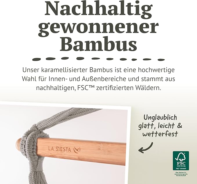 - WEATHERPROOF FABRIC: La Siesta's hanging chair features weatherproof fabric for care-free relaxation in any environment. Quick-drying and easy to maintain, it's a perfect hanging swing chair for outdoor, patio, balcony, or garden.