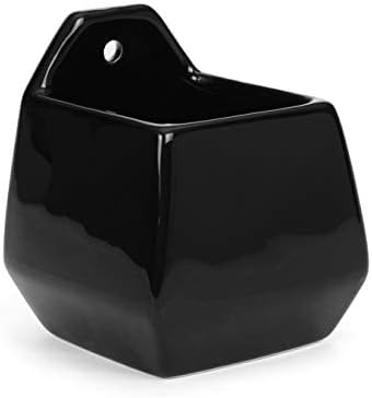 Milltown Merchants Succulent Wall Planters - Wall Vases - White Ceramic Wall Mounted Planters - Succulent Plant Pots - Hanging Vases for Living Wall (1 Pack/Contemporary/Black)