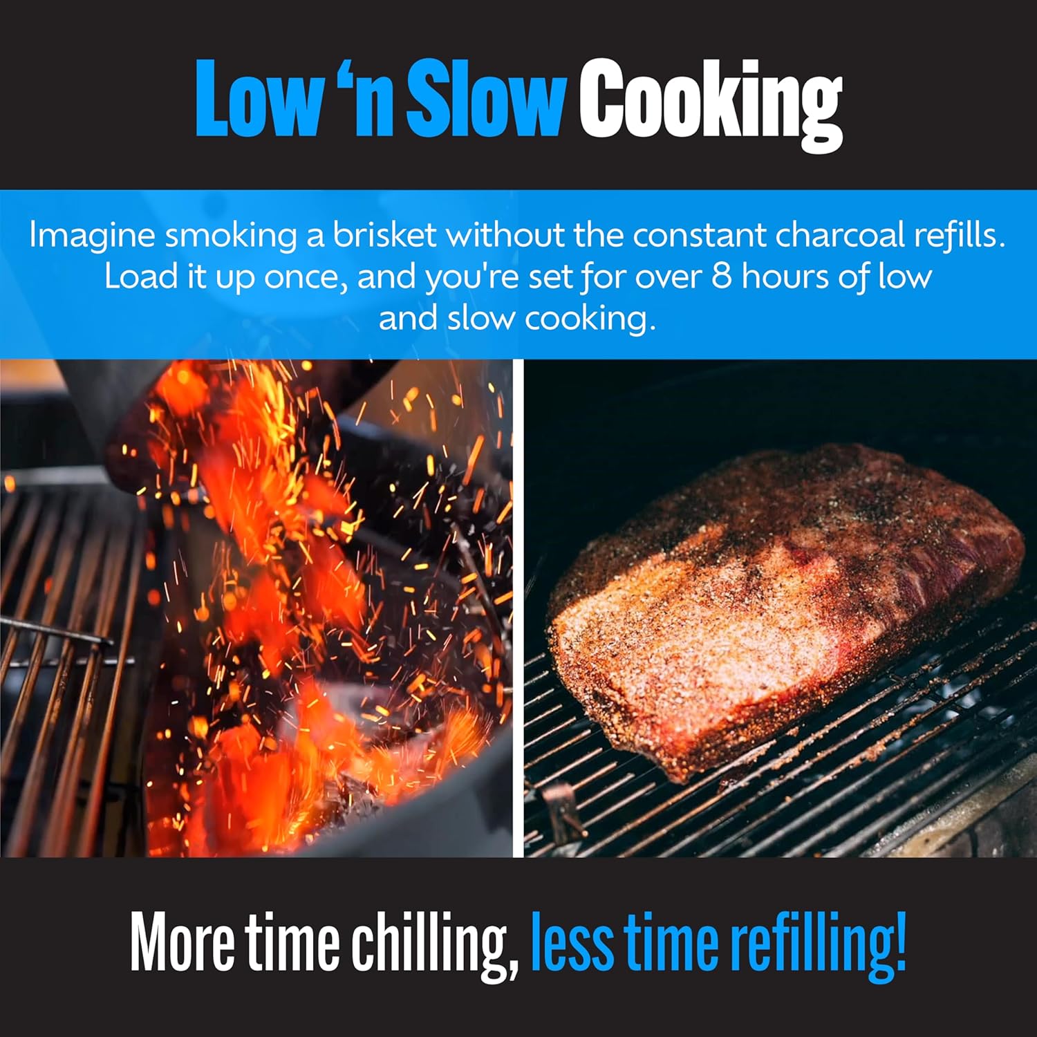 - Efficient Long-Lasting Heat: Enjoy extended low ‘n slow cooking without frequent refills. Engineered to provide hours of steady heat, this insert makes it easy to smoke, roast, or grill with minimal effort.