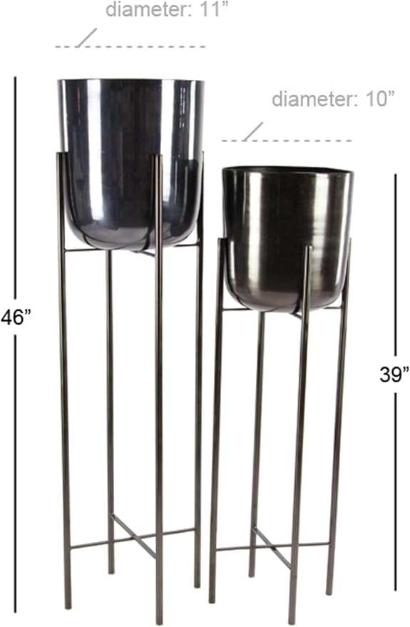 - 2 LARGE SIZE PLANTERS FOR INDOOR PLANTS: Each black metal planter measures 12L x 12W x 46H , 12L x 12W x 39H inches, and collectively weighs 14.5 lbs