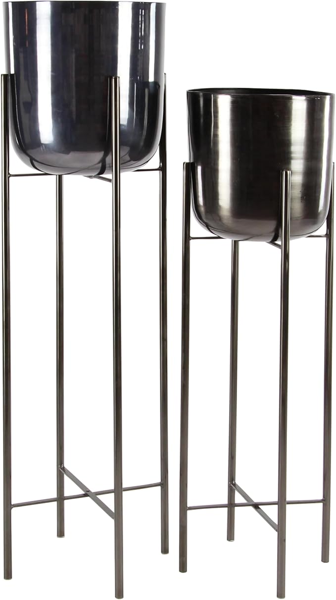 CosmoLiving by Cosmopolitan Metal Indoor Outdoor Planter Dome Large Planter Pot with Removable Stand, Set of 2 Planters 39", 46"H, Black