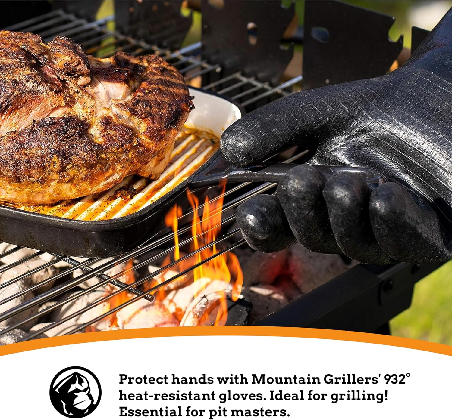 - May you always be surrounded by good friends and better bbq: Mountain Grillers has been a trusted brand by pitmasters around the globe for years, whether you are competing in a competition like Memphis in may or cooking at home? All our products like chef gloves are made from the highest quality materials that are safe and easy to use, so you can focus on the mouth-watering flavor and crispy, tasty char that you crave with our heat proof gloves for cooking