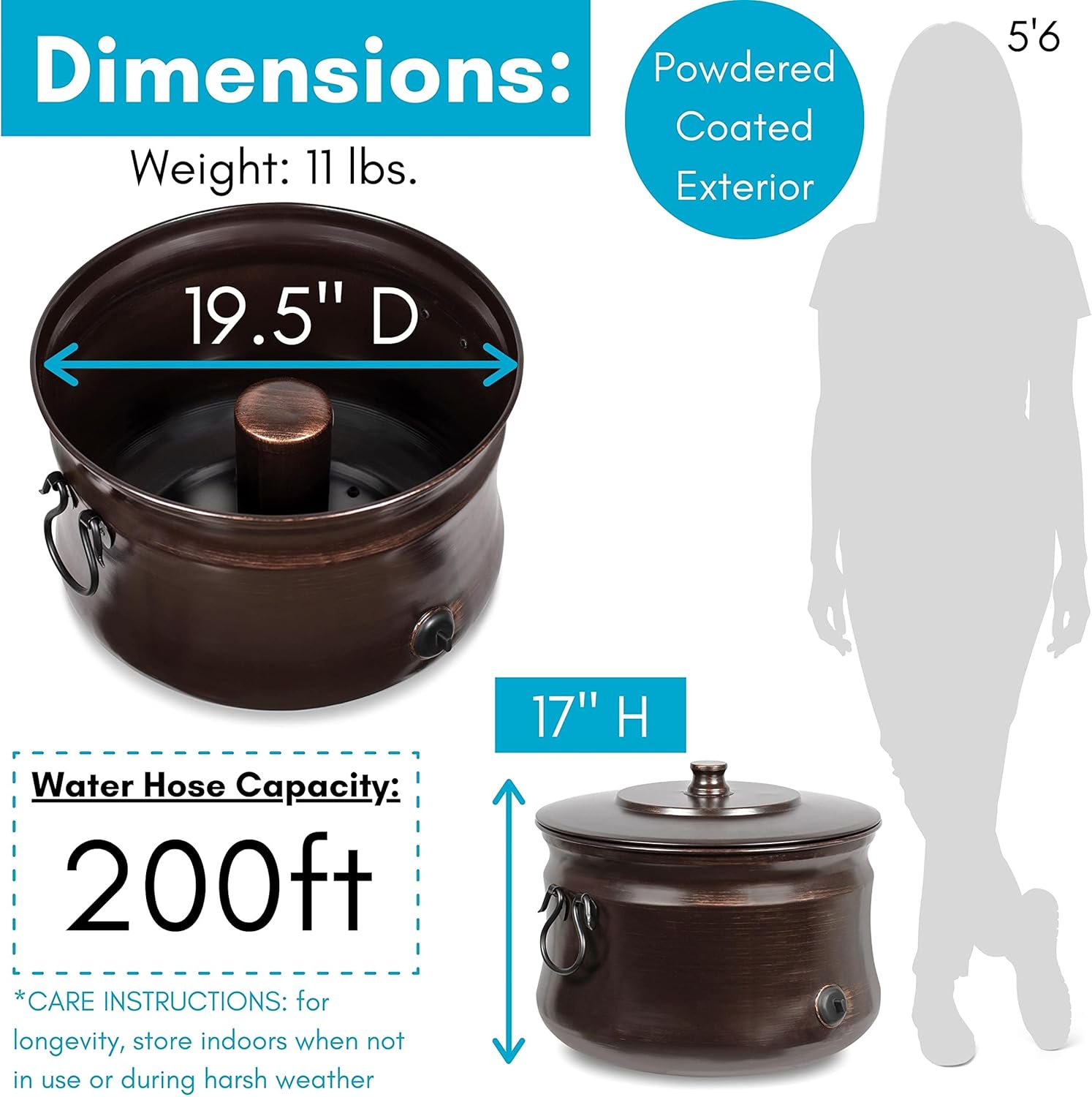 - VERSATILE INDOOR AND OUTDOOR USE: Ideal for holding up to 200 ft of water hose, this pot also doubles as storage for household items like magazines, plants, blankets, or firewood. Weighs 12.5 lbs.