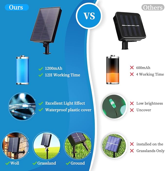- Memory Function & Timer Functions: This solar string lights features a convenient memory function that allows you to set it just once, and it will retain that setting until you adjust it again. Additionally, the timer function offers 3 different options - 3 hours, 5 hours, and 8 hours - so you can customize the lighting duration to fit your specific needs.