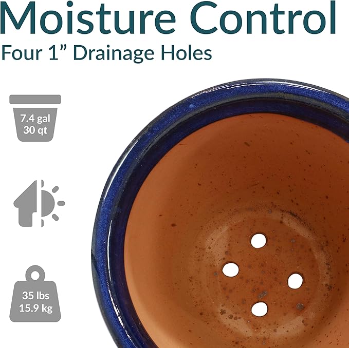 - DESIGNED FOR BEAUTY AND DURABILITY: This outdoor plant pot is crafted with a rich, hand-painted glazed finish that is kiln-fired for a classic, shining appearance. Subtle variations in color highlight the artisanal glazing process, making each piece truly unique. The durable ceramic construction offers natural UV and frost resistance, while its heavy weight adds stability to outdoor arrangements, keeping the planter upright in windy conditions.
