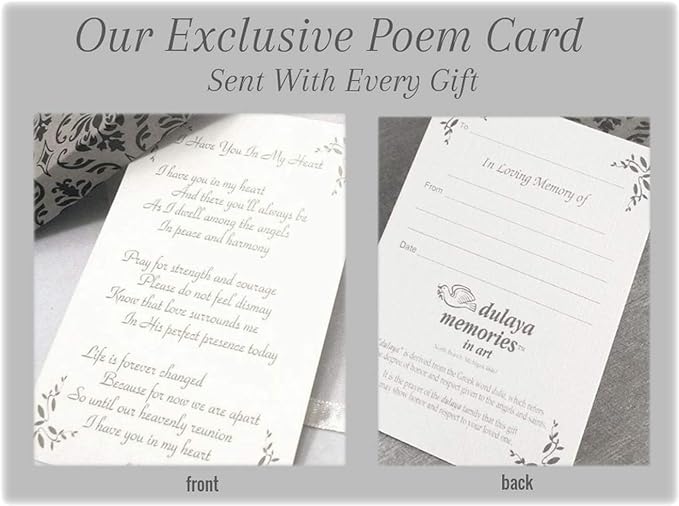 - CREATE A LASTING LOVING MEMORY: "Sending You An Angel" Poem Card Included Along With Dedication Card (see image) We know that finding the right condolences gift for loss can be challenging. We provide cost friendly sympathy gifts for loss of loved one, thatโs just right to express your feelings. Includes a free condolence card. Arrives beautifully packaged for gift giving.