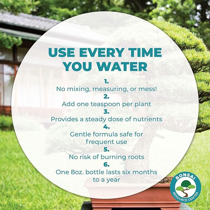 - β EFFORTLESS NOURISHMENT: No mixing, no measuring, and zero cleanup required. This formula is gentle enough for consistent use during every watering sessionβjust dilute one teaspoon in a cup or more of water for your bonsai's rejuvenating soak.